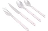Et pastellfarget 16-delers bestikksett. Dette praktiske settet passer for 4 personer og består av 4 kniver, 4 gafler, 4 skjeer og 4 små (te)skjeer. Laget i rustfritt stål med plasthåndtak, som gir settet lang levetid.